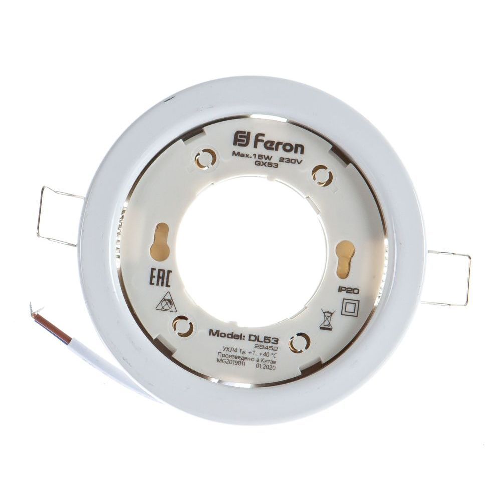 Светильник потолочный встраиваемый (ФВО) FERON DL53, под лампу GX53 GX53, белый, круг, 106*106*20 мм, монтажный диаметр 81мм, корпус металл, неповоротный