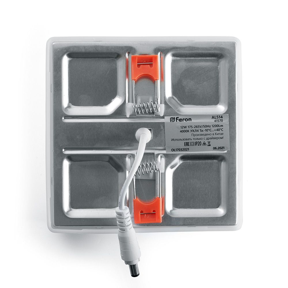 Светильник встраиваемый Feron даунлайт под любое отверстие 6W(600Lm) 4000K 4K квадрат 90x90x20 AL514 41569